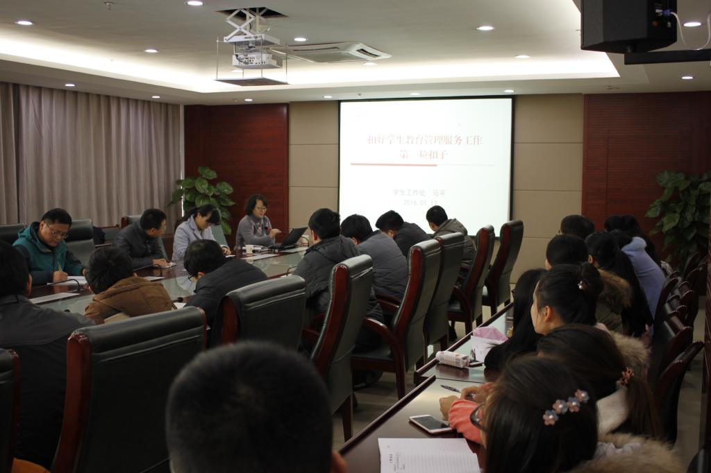 为进一步提高我校辅导员的综合素质,提升我校大学生日常教育的层次化水平、学生管理的科学化水平以及辅导员工作素养,1月13日,校第十四期辅导员培训班系列培训课程在行知楼2008会议室举行,学生工作处处长马平做了题为《扣好学生教育管理服务工作第一粒扣子》的辅导讲座,全体专职辅导员参训。