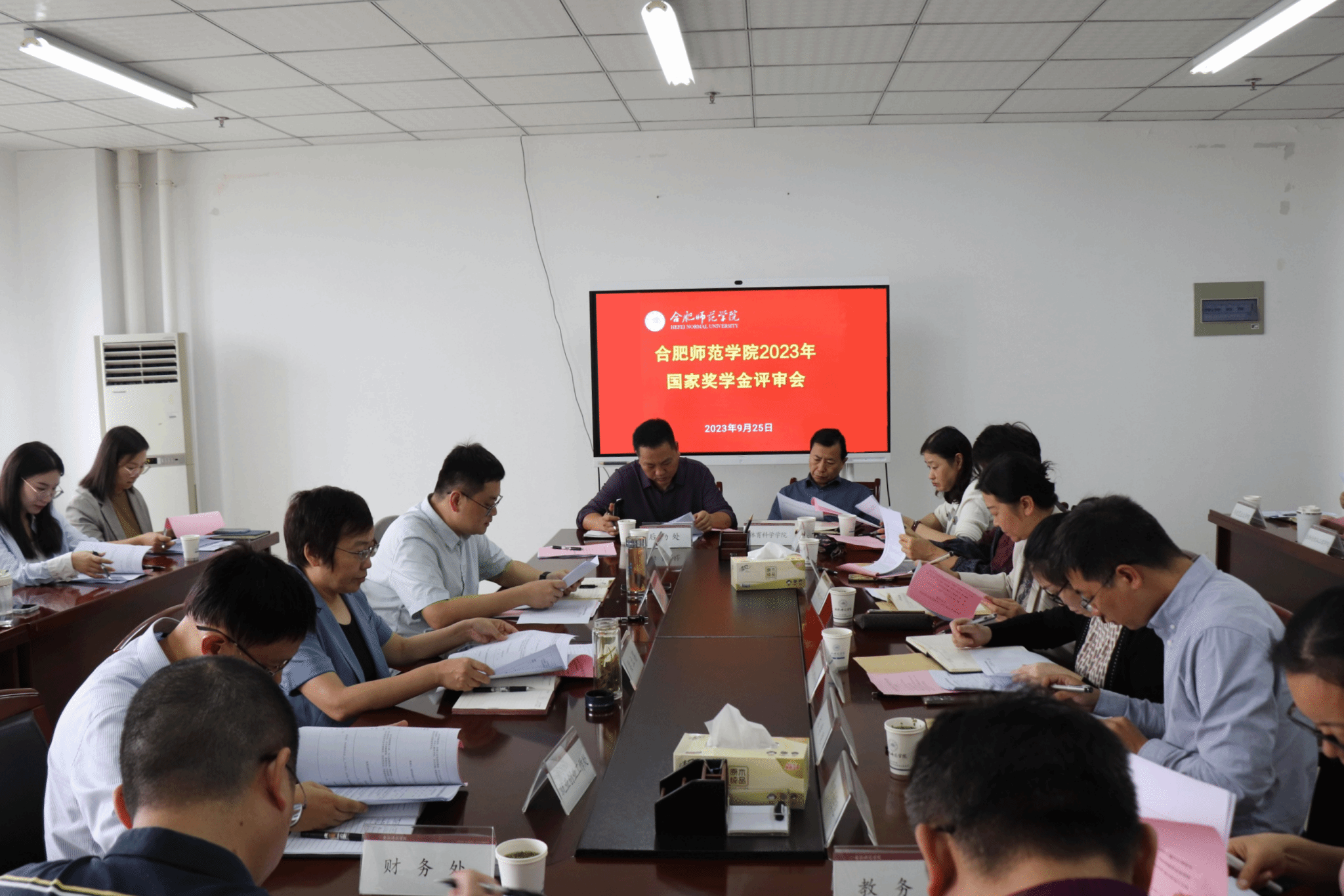 本网讯 9月25日下午,学院在锦绣校区行知楼2013会议室召开2023年国家奖学金评审会,院党委副书记梁立昌,团委、教务处、学生工作处、就业创业工作处、财务处、后勤处、保卫处等单位负责人,各二级学院党委(党总支)书记参加会议。