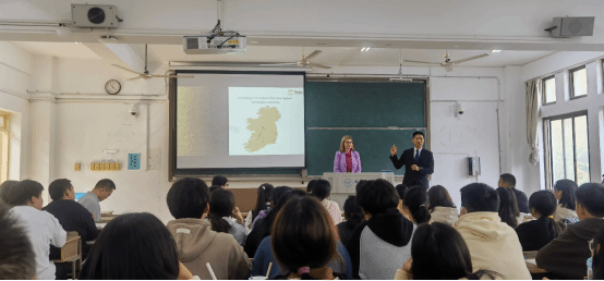 座谈交流会后,在蒋道华、朱金苗等相关老师的陪同下,Mary Simpson一行深入制药工程(中外合作)班课堂一线,与学生进行了深入的沟通与交流,她介绍了爱尔兰香农理工大学的专业设置和办学特色,并为学生们答疑解惑。(国际交流与合作处:程静)