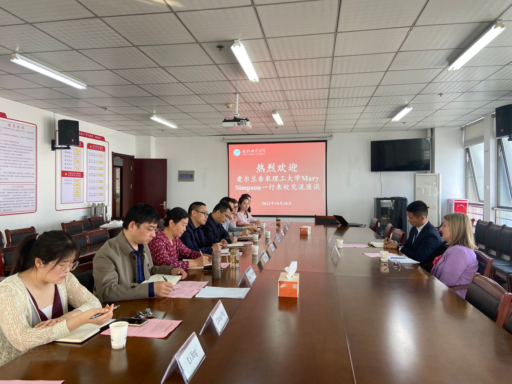 10月30日,爱尔兰香农理工大学国际办公室主任Mary Simpson、亚洲区总监Jack Meng一行到访我院。研究生处、国际交流与合作处、化学与制药工程学院参加了座谈会。座谈会由国际交流与合作处副处长蒋道华主持。