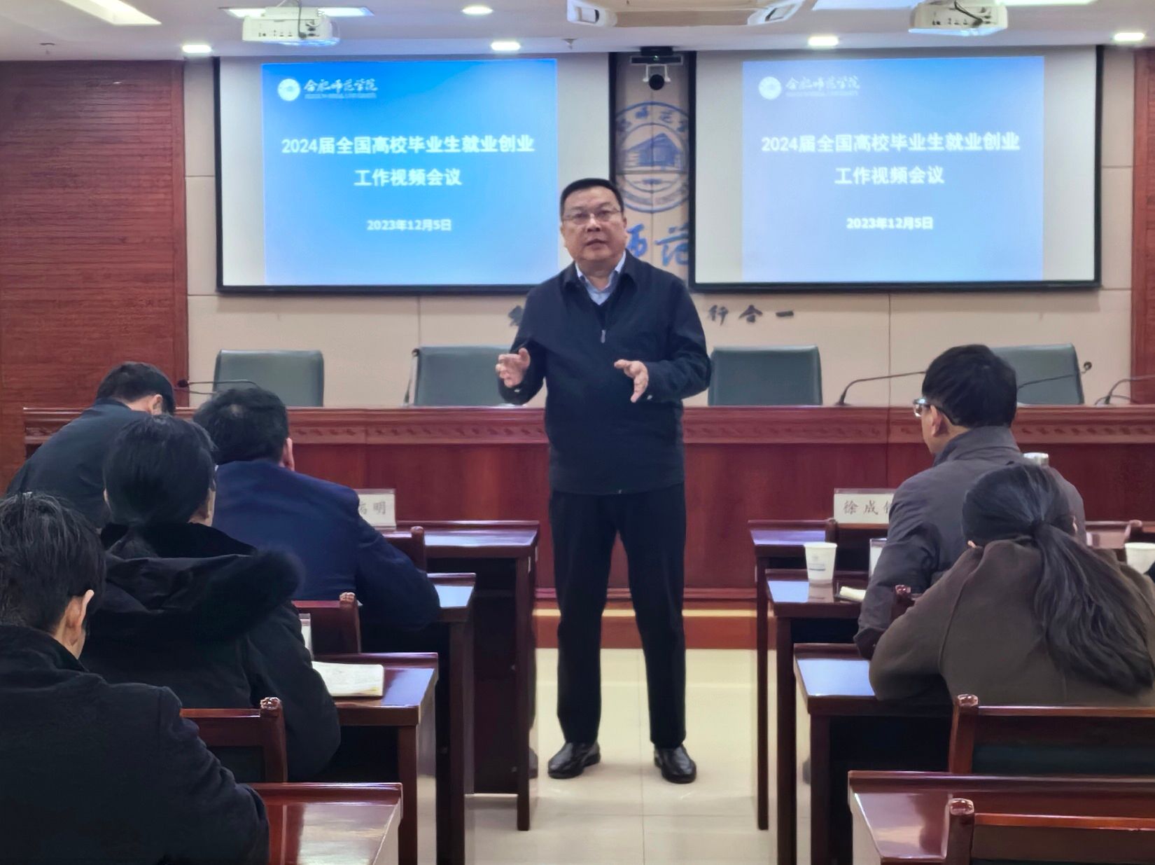 12月5日下午,教育部、人力资源社会保障部联合召开2024届全国普通高校毕业生就业创业工作视频会议,教育部党组书记、部长怀进鹏,人力资源社会保障部党组成员、副部长吴秀章,工业和信息化部党组成员、副部长王江平出席会议并讲话,教育部党组成员、副部长翁铁慧主持会议。学院在锦绣校区行知楼第三会议室设立分会场,党委书记徐成钢,党委委员、副院长周端明和相关职能部门负责人,各学院党委(党总支)书记、就业创业工作处全体人员参加了会议。