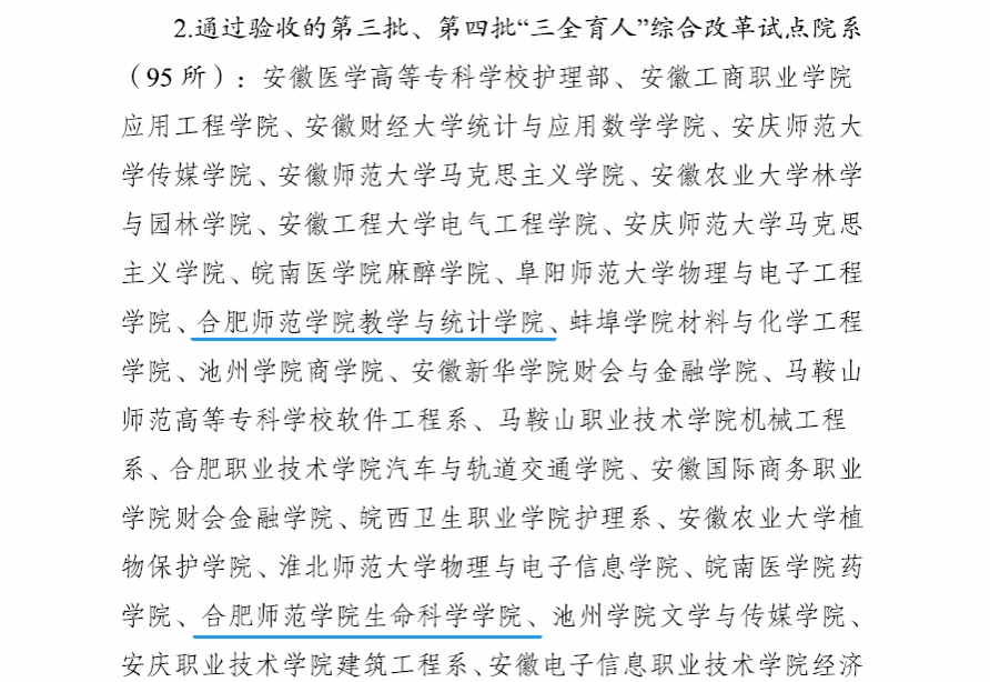 近日,省委教育工委发布《中共安徽省委教育工委关于公布第三批、第四批“三全育人”综合改革试点单位总结验收评审结果的通知》(皖教工委函〔2024〕37号),我校作为安徽省第三批“三全育人”综合改革试点高校,数学与统计学院、生物与食品工程学院作为第三批试点院系,均顺利通过总结验收。