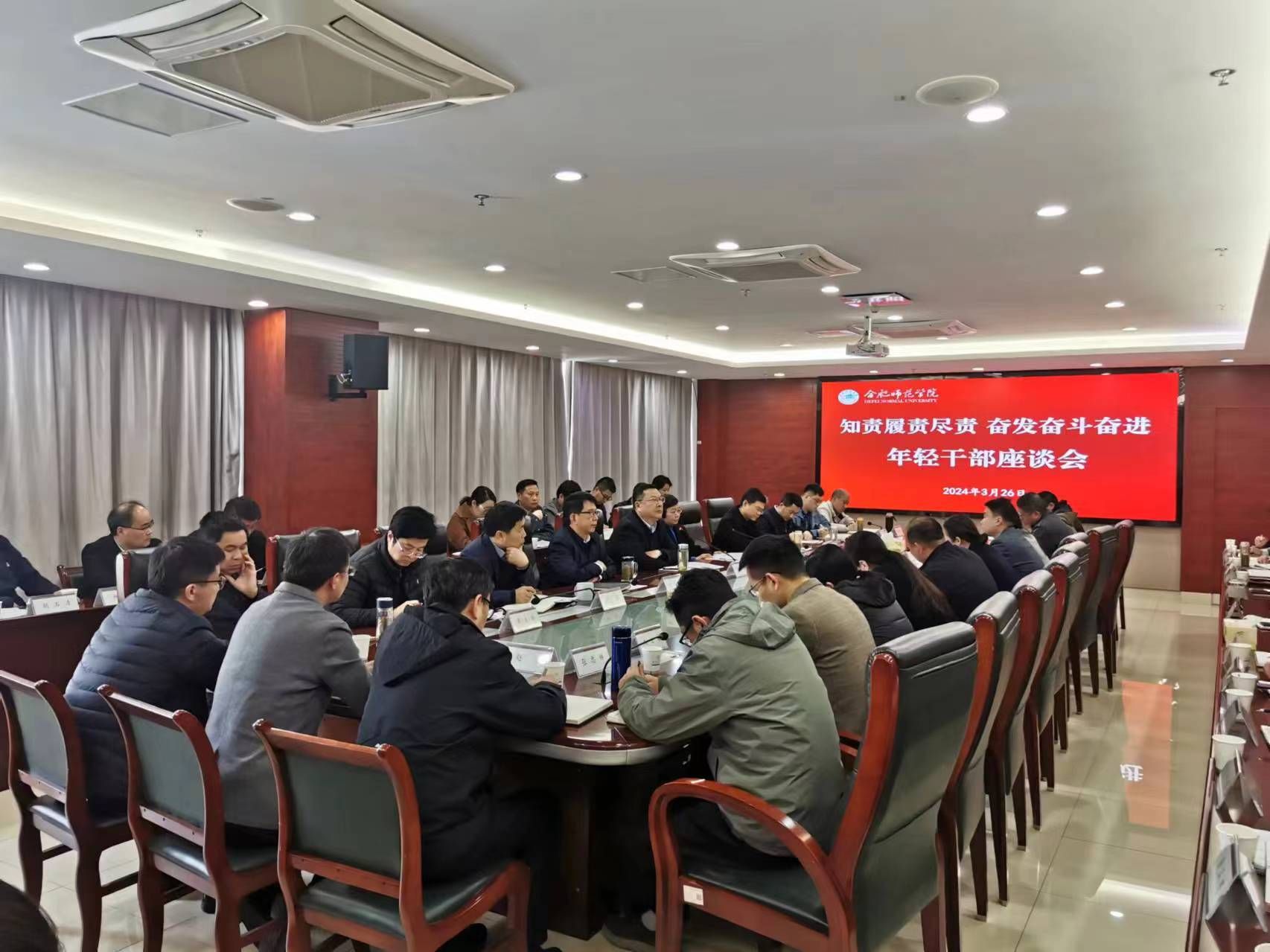 为贯彻落实中央、省委关于年轻干部管理监督的有关工作要求,教育引导年轻干部牢固树立正确政绩观,激励年轻干部转变作风、担当作为,3月26日上午,学院在锦绣校区第二会议室召开年轻干部座谈会。院党委书记徐成钢,纪委书记、监察专员徐文林出席会议,学院52名年轻处级干部、科级干部代表及组织部、宣传部、纪委办负责人参加会议,会议由院党委副书记梁立昌主持。