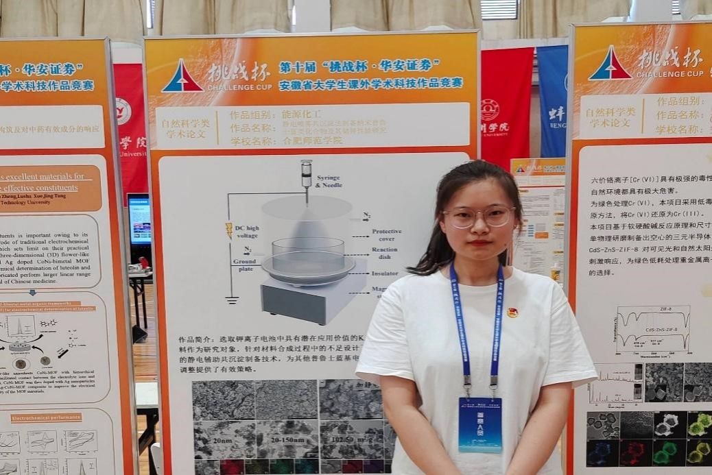 郭雁青,女,中共党员,物理与材料工程学院2020级新能源材料与器件专业学习委员,2023年度“感动合师”十大青年学生之科创人物。连续3年学习成绩位于班级第一,获得国家奖学金、国家励志奖学金及“十佳优良学风先进个人”“三好学生”“优秀学生干部”等称号。获国家级、省级、校级奖项10余项;主持国家级大学生创新创业项目1项(普鲁士蓝类钾离子电池正极材料的合成及电化学性能表征);参与国家级大学生创新创业项目1项(钠离子电池隔膜材料的设计与应用);在指导老师的带领下,以第二作者发表SCI论文1篇。