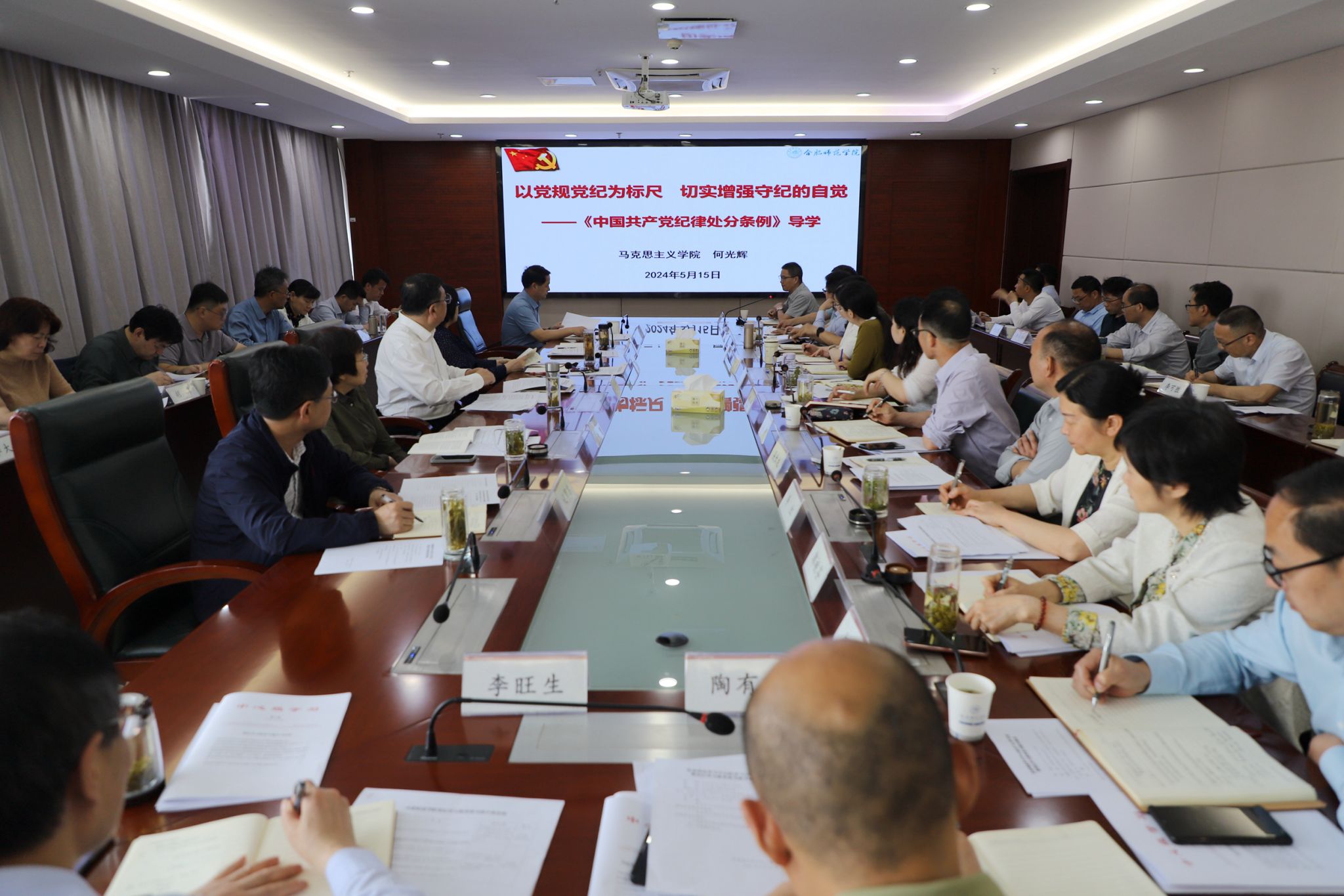 5月15日上午,学院在行知楼2008会议室举行党委理论学习中心组扩大学习会暨党纪学习教育读书班开班式。党委书记徐成钢主持会议并作开班动员讲话。党委理论学习中心组成员,各院系级党委(党总支、直属党支部)书记,各学院院长,各部门主要负责人参会。
