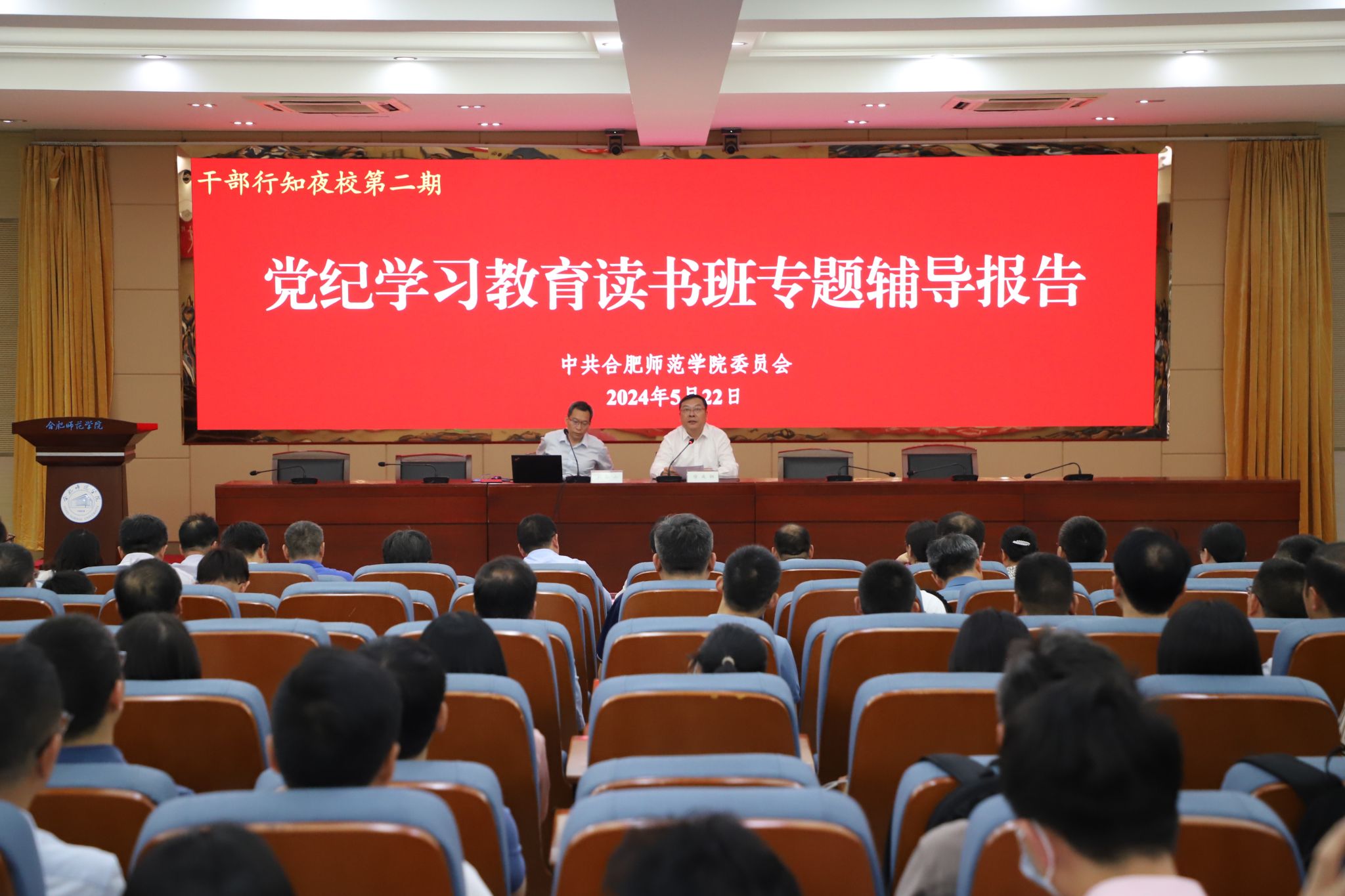 为推动党纪学习教育落到实处、见到实效,根据学院党纪学习教育读书班安排,结合干部行知夜校,5月22日晚,学院在锦绣校区学术报告厅举办党纪学习教育读书班专题辅导报告,省纪委监委第八纪检监察室三级调研员刘振山同志应邀作《中国共产党纪律处分条例》解读专题辅导报告。全体处科级干部、党支部书记、党务秘书近300人参加,院党委书记徐成钢主持报告会。