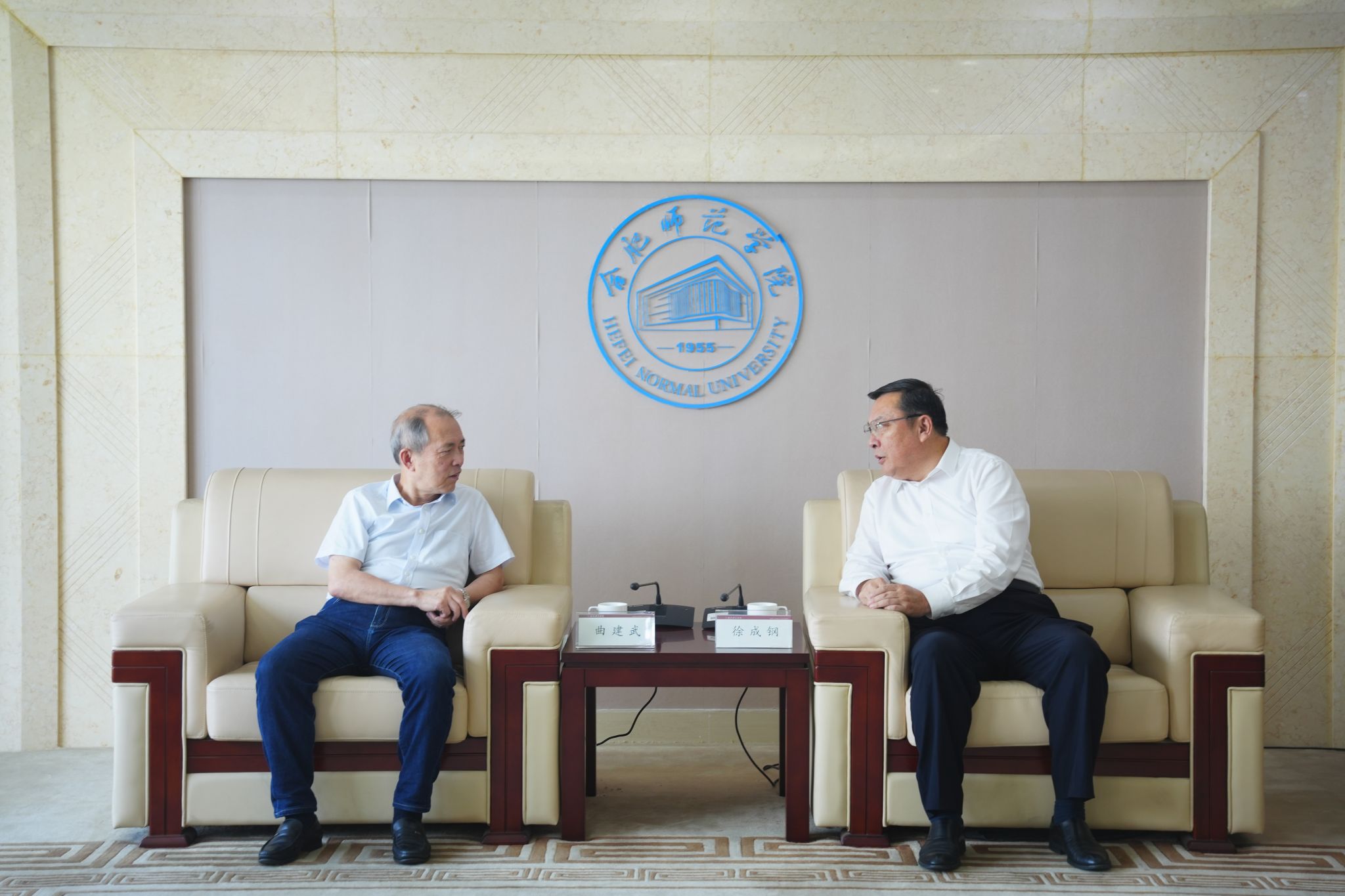 报告会开始前,院党委书记徐成钢在锦绣校区接待室会见了曲建武,对曲建武来院指导工作表示衷心感谢,简要介绍了学院基本情况和思想政治工作开展情况,并就如何创新大学生思政教育、加强辅导员队伍建设等问题与曲建武进行了深入探讨。