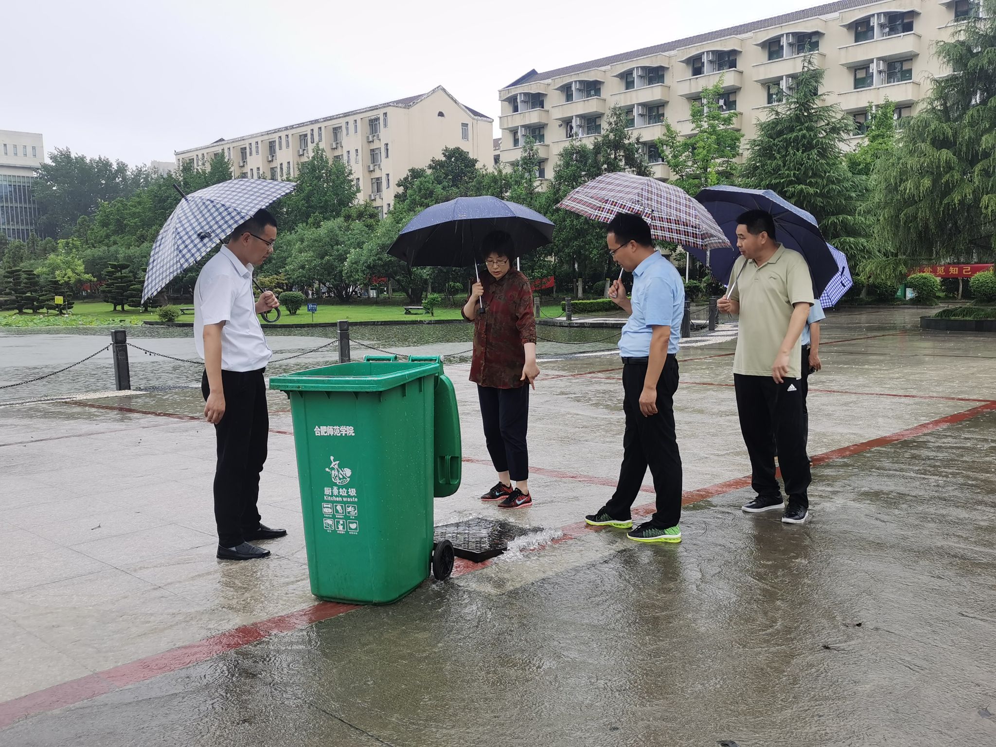 院领导冒雨检查学校防汛工作并慰问一线工作人员