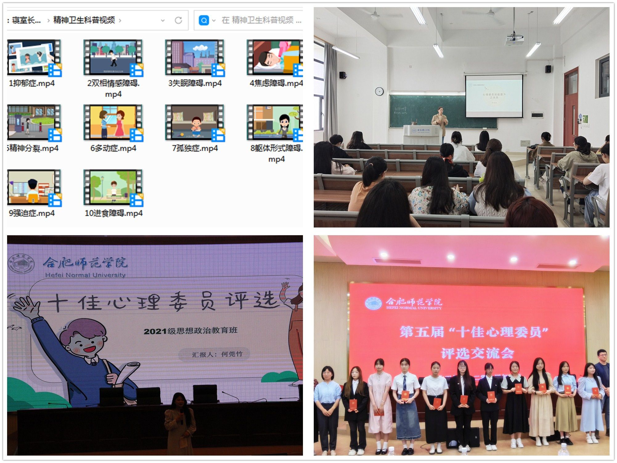 文学院《关于恋爱这件小事》、教育与心理科学学院《大学生恋爱心理》、数学与统计学院《大学生常见爱情困扰及其应对》从多个角度探讨爱情及恋爱挫折的应对方式;经济与管理学院《大学生朋辈交往》、外国语学院《亲密有间,和而不同—构建和谐的宿舍关系》、音乐学院《沟通你我他—人际交往之道》、生物与食品工程学院《同是天涯求学人,相逢何必曾相识—谈大学生的人际交往》从多个维度关注大学生人际交往现状,提升学生人际关系处理能力;美术与设计学院《大学生自我发展—如何发现更好的自己》、马克思主义学院《提高自我认知,成就美好人生》从侧面与学生一起探索自我成长的奥秘;电子信息与集成电路学院《与压力共舞,快乐生活》帮助学生学习与压力共处,在压力中获得力量;化学与制药工程学院《情绪管理与大学生心理健康》与学生共同探讨情绪困扰的成因并给予积极指导和建议;计算机与人工智能《常见神经症及其日常心理护理》深入解读神经症的种类和症状,解析神经症自我维护的具体方法。