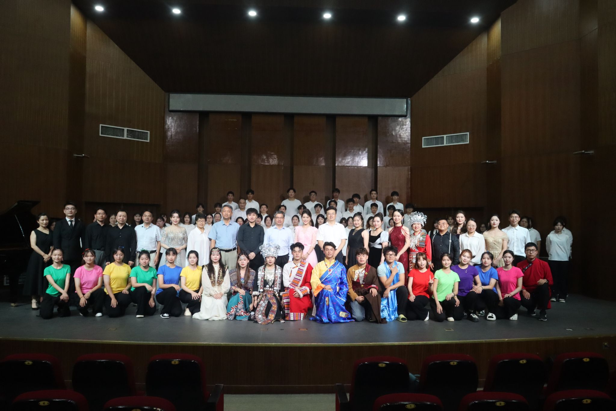 为庆祝中华人民共和国成立75周年,弘扬爱国主义精神,9月25日,学院在音乐厅举行了“团结凝聚力量,奋斗铸就伟业”庆祝中华人民共和国成立75周年主题音乐会。现场座无虚席、气氛热烈。院党委委员、副院长华银峰出席音乐会,社会各界的音乐爱好者、文化学者、各界嘉宾,学院部分职能部门负责人、二级学院主要负责人以及音乐学院全体师生参加音乐会。