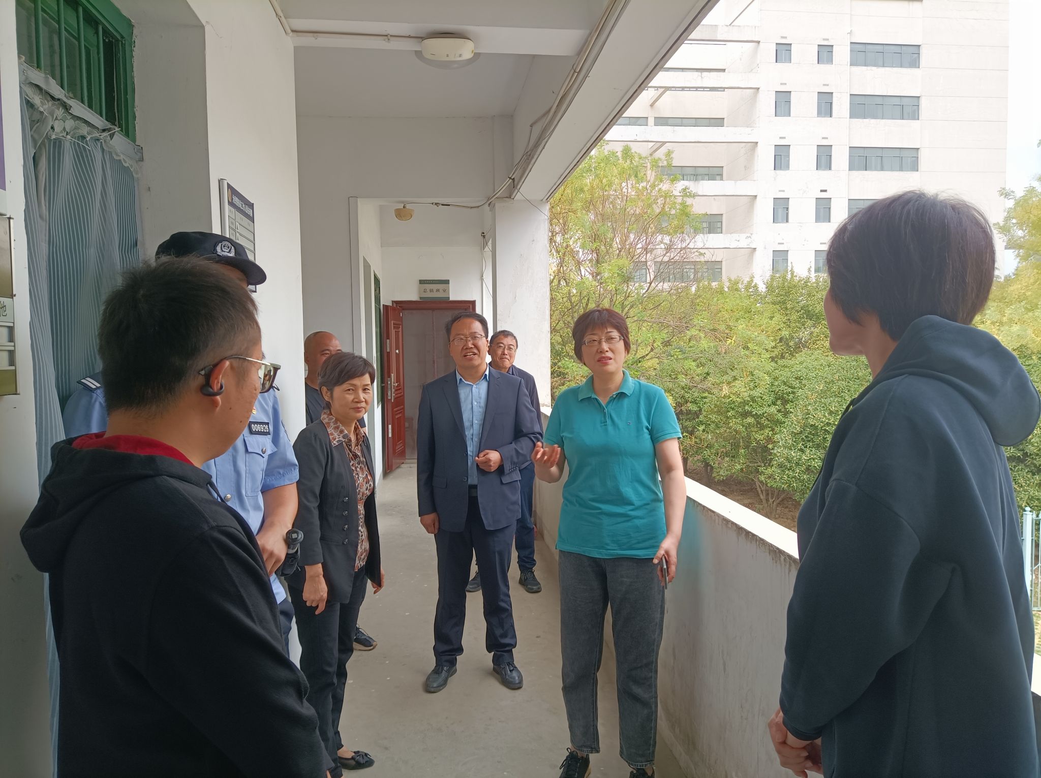 院党委书记徐成钢,院党委委员、纪委书记、监察专员徐文林等一行先后实地查看了锦绣校区监控室、门卫岗亭、食堂、学生宿舍消防通道等场所,与值班值守教职员工亲切交谈,详细了解国庆假期安全保卫、后勤保障、消防安全、校园环境与卫生等情况,对他们的辛勤工作表示肯定,嘱咐大家劳逸结合、保重身体,并向他们致以节日的问候和祝福。走访慰问中,徐成钢强调,要始终保持“时时放心不下”的责任感和“睁眼睡觉”的警觉性,强化安全管理和应急响应,确保校园和谐安定。