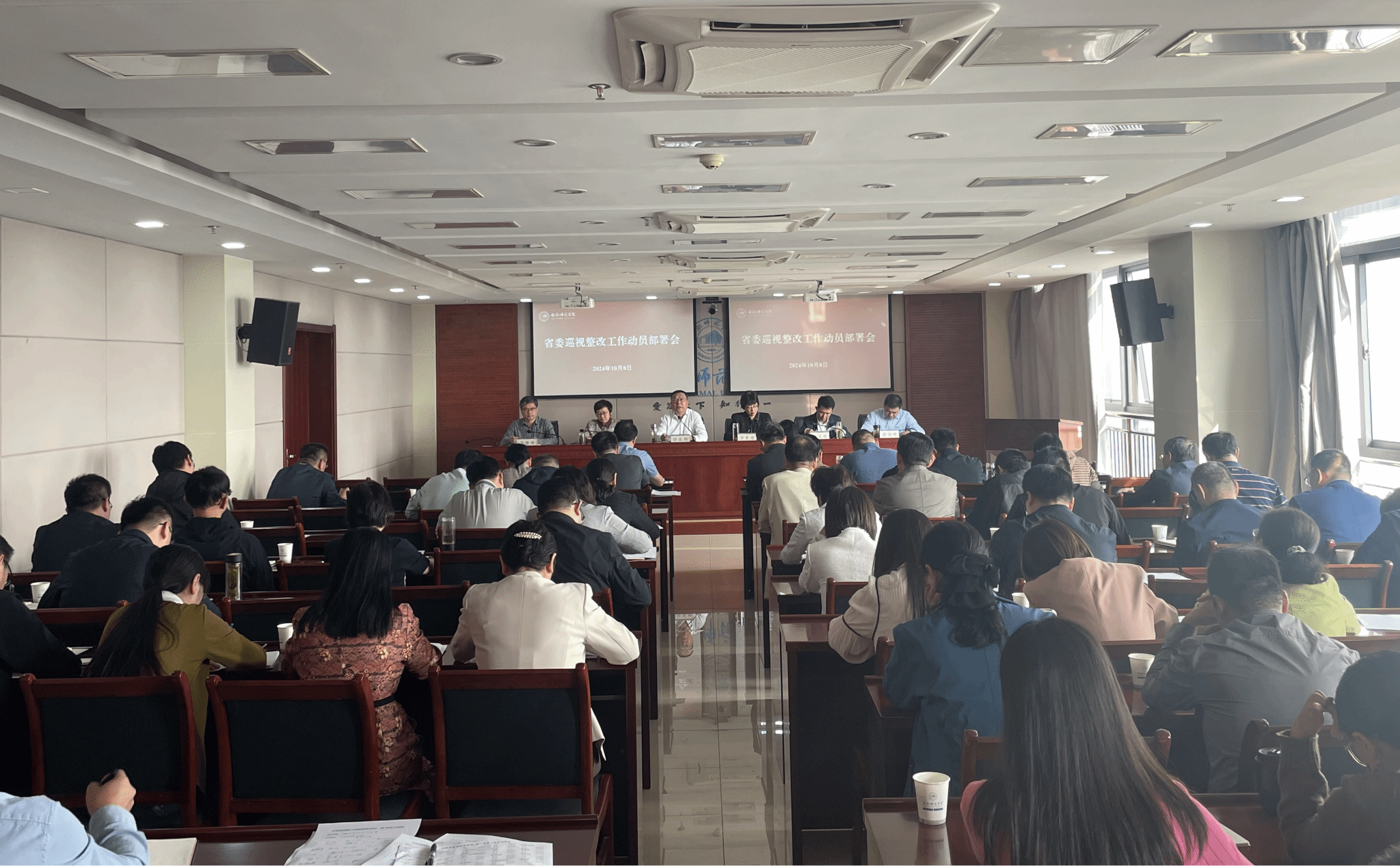 10月8日下午,学院组织召开省委巡视反馈意见整改工作动员部署会,全面动员部署学院巡视整改工作。全体院领导出席会议,各二级党组织、各单位部门主要负责人参加会议。会议由党委副书记、院长方东玲主持。
