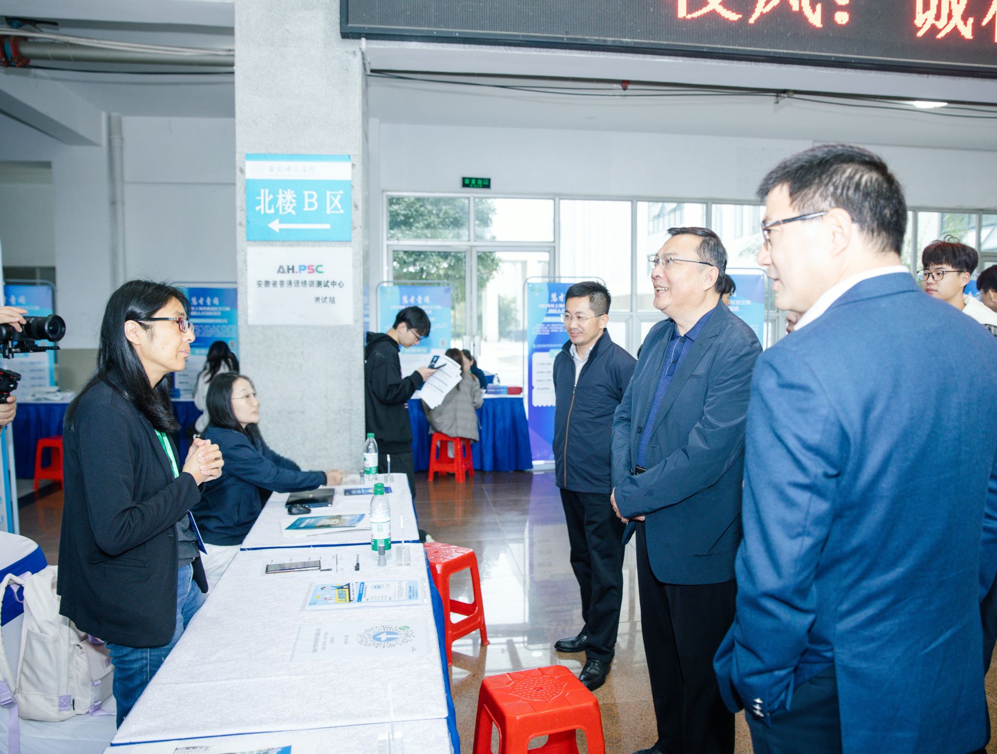 招聘会现场,徐成钢与上海市青浦区人才局和用人单位代表交流,了解招聘情况。他强调,相关部门及二级学院要深入落实就业工作“一把手”工程,积极拓展就业渠道,不断提升就业指导服务水平,帮助毕业生提升就业能力。