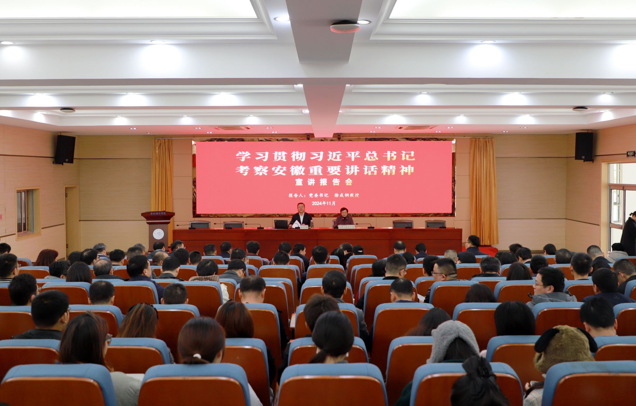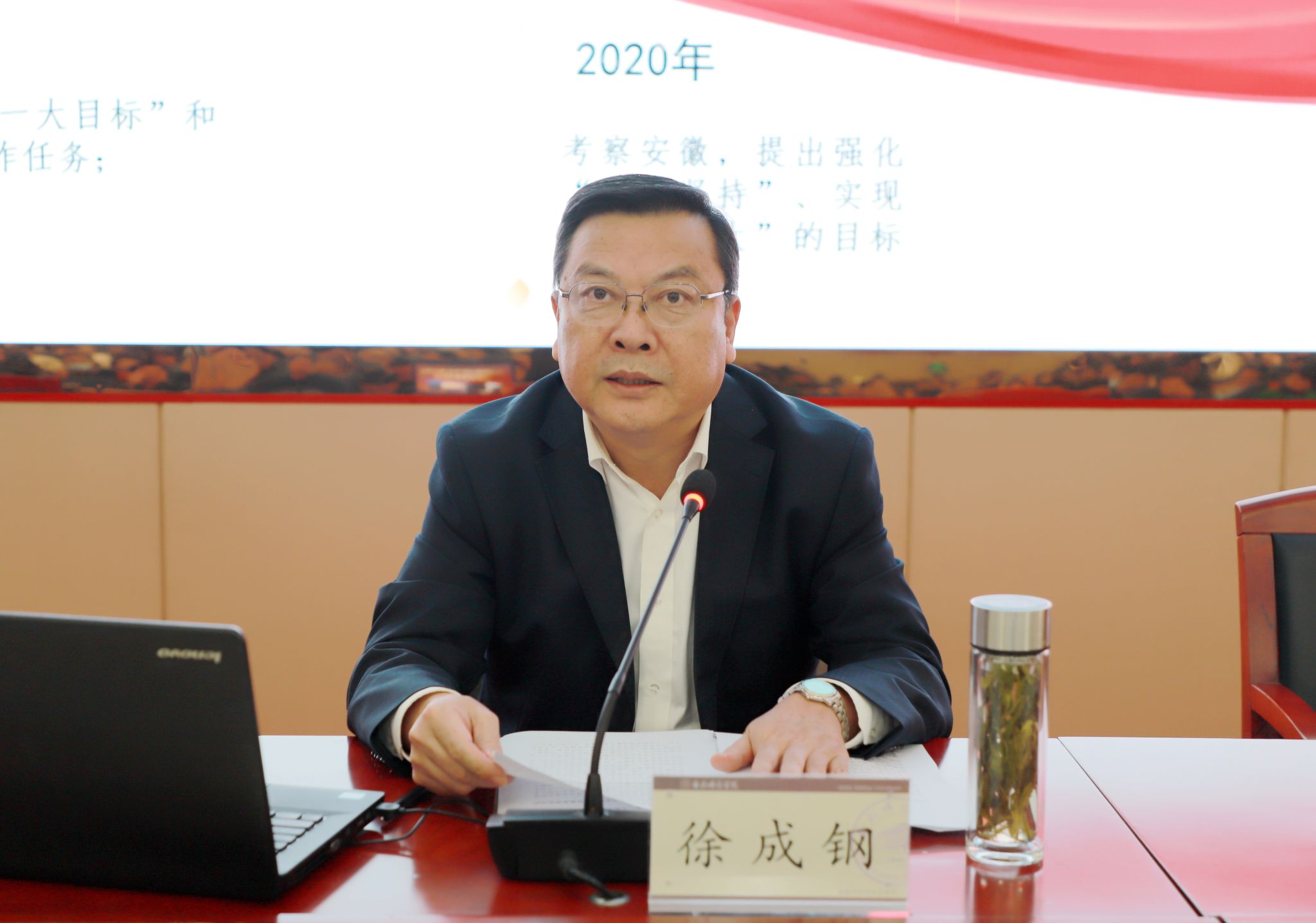 会上,徐成钢从充分认识习近平总书记重要讲话精神的重大意义、深刻领会精神的丰富内涵、切实推动精神落地生根等三个方面,结合学院实际,全面系统地进行了阐释和宣讲。徐成钢在宣讲中表示,习近平总书记的重要讲话高瞻远瞩、思想深邃、内涵丰富、指向明晰,具有极强的时代感召力、思想引领力和实践穿透力,是指引安徽和学院各项事业发展的根本遵循和行动指南。要把学习宣传贯彻习近平总书记考察安徽重要讲话精神作为当前和今后一个时期的重大政治任务,深入学习领会、广泛宣传宣讲、全面贯彻落实,做到融会贯通、深入人心、落地见效。