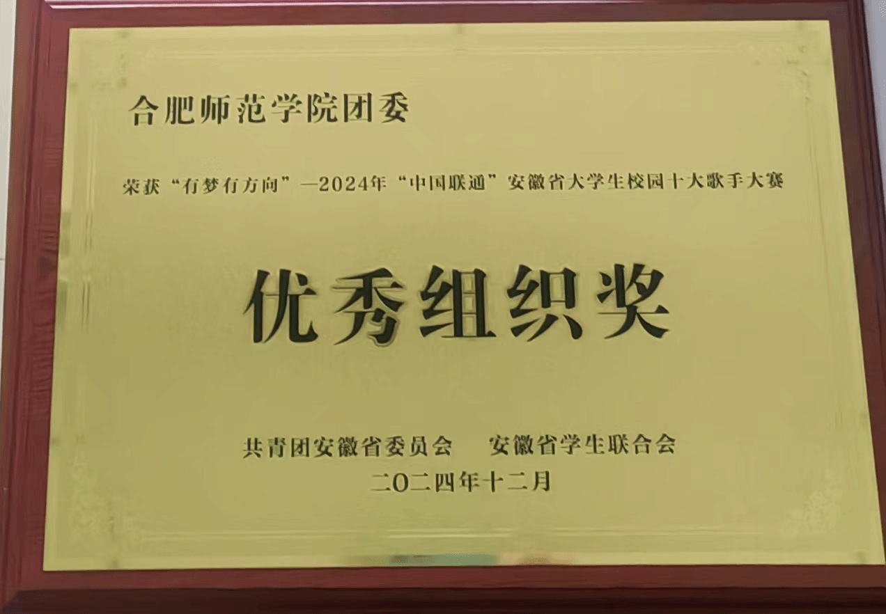 12月6日晚,由团省委、省教育厅、省文化和旅游厅、安徽广播电视台、省学联共同主办的2024年“中国联通”安徽省大学生校园十大歌手大赛总决赛在安徽广播电视台举办,现场及线上累计观众1.95万人,直播点赞量达5.4万。学院2022级音乐学专业的葛文静同学荣膺全省大学生校园十大歌手称号,并作为特约歌手正式加盟中国联通“海纳星火计划”。学院荣获活动优秀组织奖。