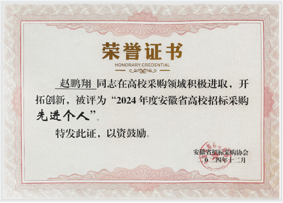 我校连续三年获评“安徽省高校招标采购年度先进集体”,这既是对我校招标采购工作的认可与鼓励,又是鞭策与动力。我校将以此为契机,进一步提高招标采购领域从业人员的专业化水平和管理能力,加强招标采购工作的规范化、标准化、信息化建设,主动探索新思路、新方法,为提升学校招标采购工作的整体水平贡献智慧和力量,推动全省高校招标采购工作创新发展,共同开创新局面。