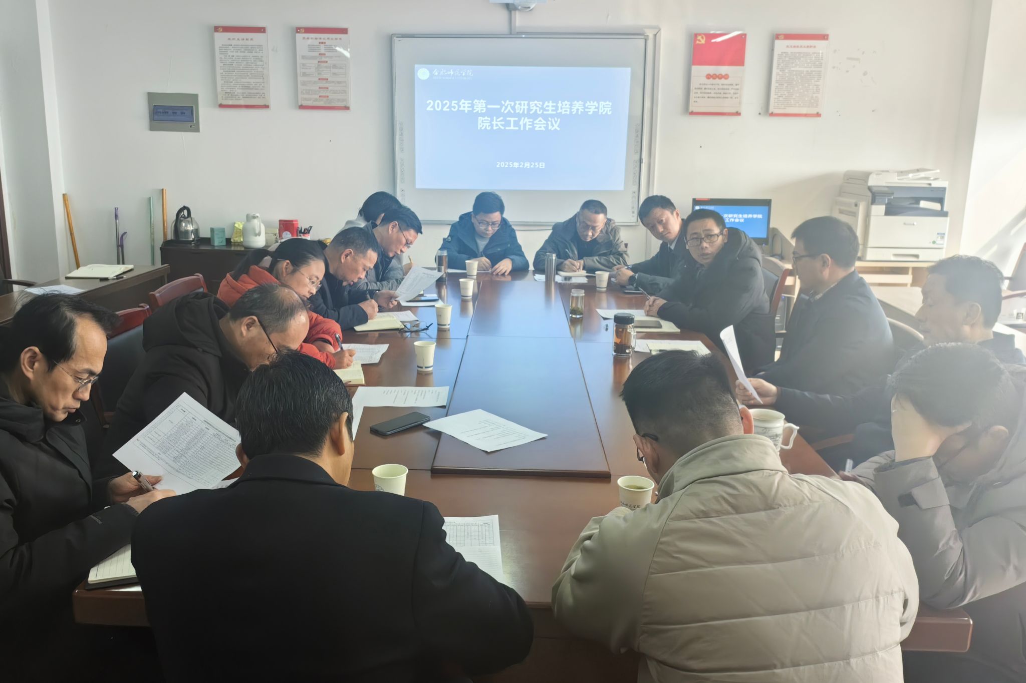 会上,研究生处负责人围绕新一轮培养方案修订与论证、论文指导、课程与教学改革、就业工作、导师遴选与考核、招生考试以及硕士学位点建设等七个方面,对2025年研究生教育工作进行了系统梳理和全面部署。