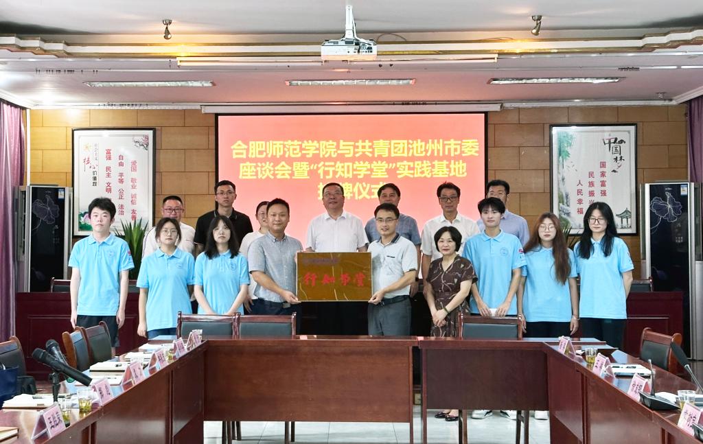 调研中,徐成钢还出席了学院与池州团市委合作交流座谈会暨“行知学堂”实践基地挂牌仪式。座谈会上,池州团市委负责人介绍近年来我院在池州市开办行知学堂的情况,表示团市委将更大力度做好学堂的对接协调和“小先生”们的服务保障工作,希望学院今后能在池州开办更多“行知学堂”,服务更多小学员。孝肃社区负责人转达了辖区居民对行知学堂的高度赞誉,并介绍了相关服务保障工作。行知学堂“小先生”代表郑嘉铭汇报了孝肃社区“行知学堂”开展情况,并围绕实践心得进行发言。