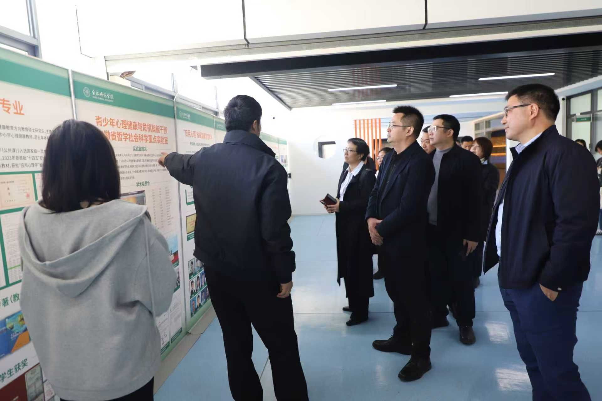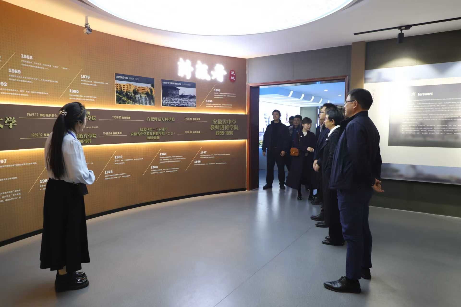 任立刚、王姮一行还参观了学院校史馆、学陶馆,并实地考察了安徽省学生心理健康教育指导和发展中心、体育科学学院(合肥足球学院)。