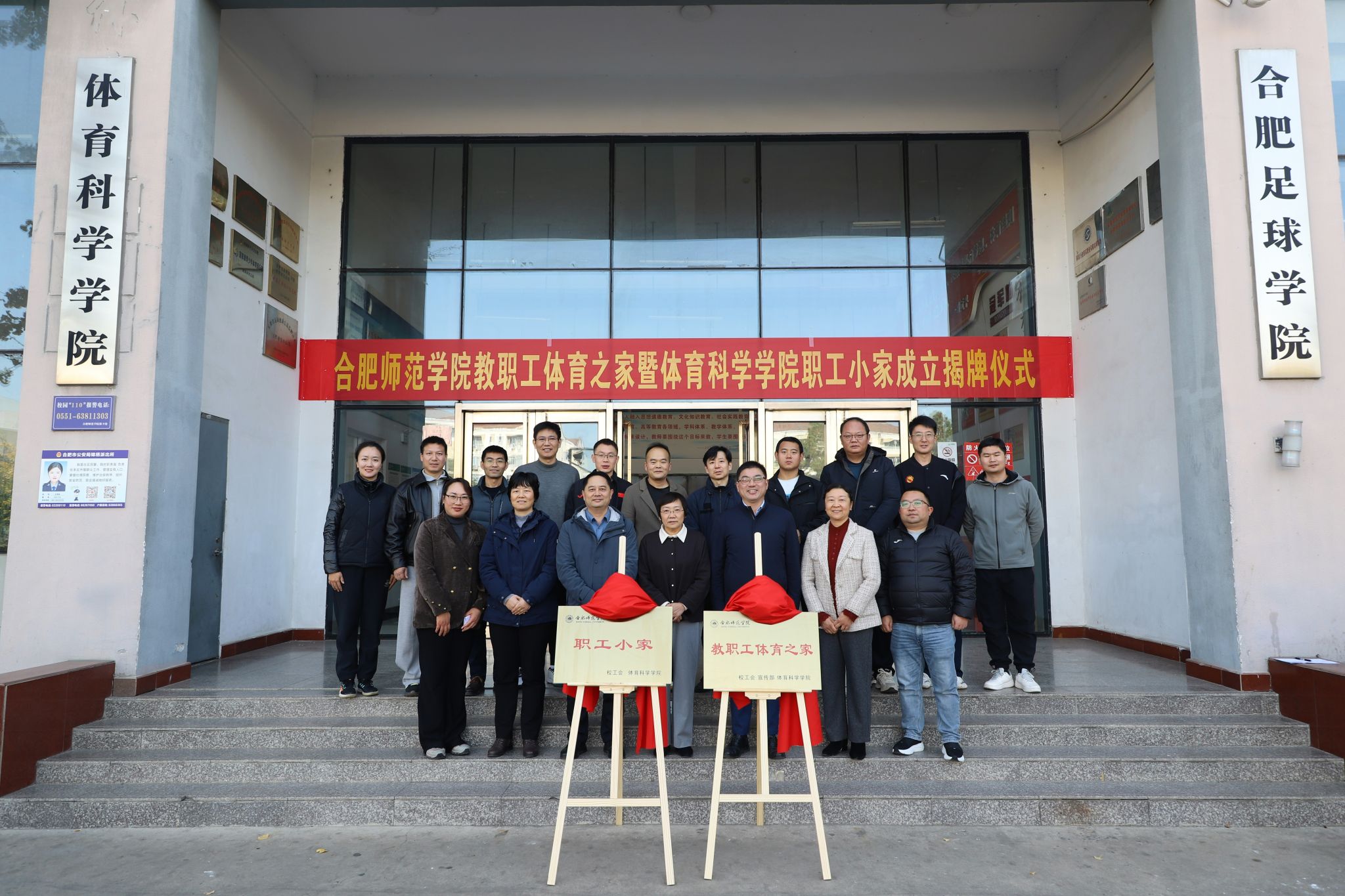 11月26日中午,学院教职工体育之家暨体育科学学院职工小家成立揭牌仪式在锦绣校区体育馆举行。院党委副书记梁立昌,院党委委员、副院长周端明,宣传部、统战部、工会等相关部门负责人、体育科学学院负责同志及教职工代表共同参加。