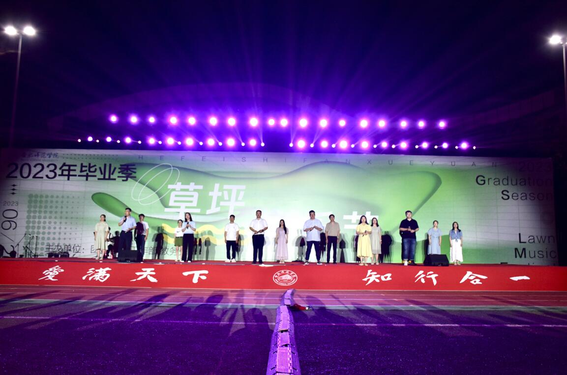 本网讯 6月20日晚,学院在锦绣校区田径运动场举办“季忆留夏·时光有你”2023年毕业季草坪音乐节。活动由院团委、学生工作部、教务处联合举办。院党委书记徐成钢,党委副书记、院长方东玲,党委副书记梁立昌,党委委员、纪委书记、监察专员徐文林,党委委员、副院长周端明,团省委学校部副部长张国栋、汪沫及学校相关部门负责人、各二级学院党组织负责人、辅导员与学生代表1000余人到场观看活动。