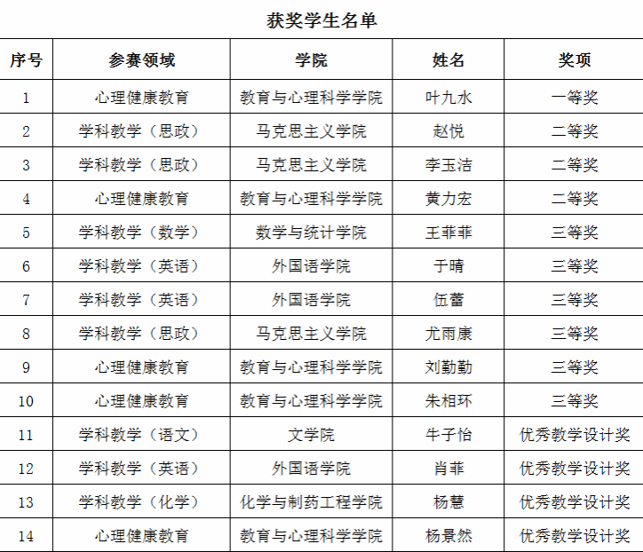 近日,2025年全国“田家炳杯”全日制教育硕士专业学位研究生教学技能大赛各学科方向比赛相继落下帷幕。我校研究生在这项全国教育硕士领域层次最高、规模最大、影响最广的专业比赛中脱颖而出,荣获一等奖1项、二等奖3项,三等奖6项,以及优秀教学设计奖4项,优秀指导教师4位,获奖数量与等级较上一年再创新高。