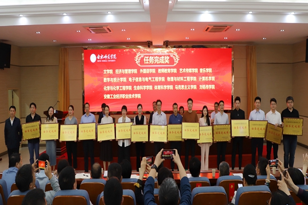 徐成钢、梁立昌、徐文林、华银峰、周端明等院领导分别向“标兵单位”代表、“先进个人”“任务完成奖”单位代表、“‘双创’教育奖”单位代表、“继续深造率奖”单位代表颁奖。