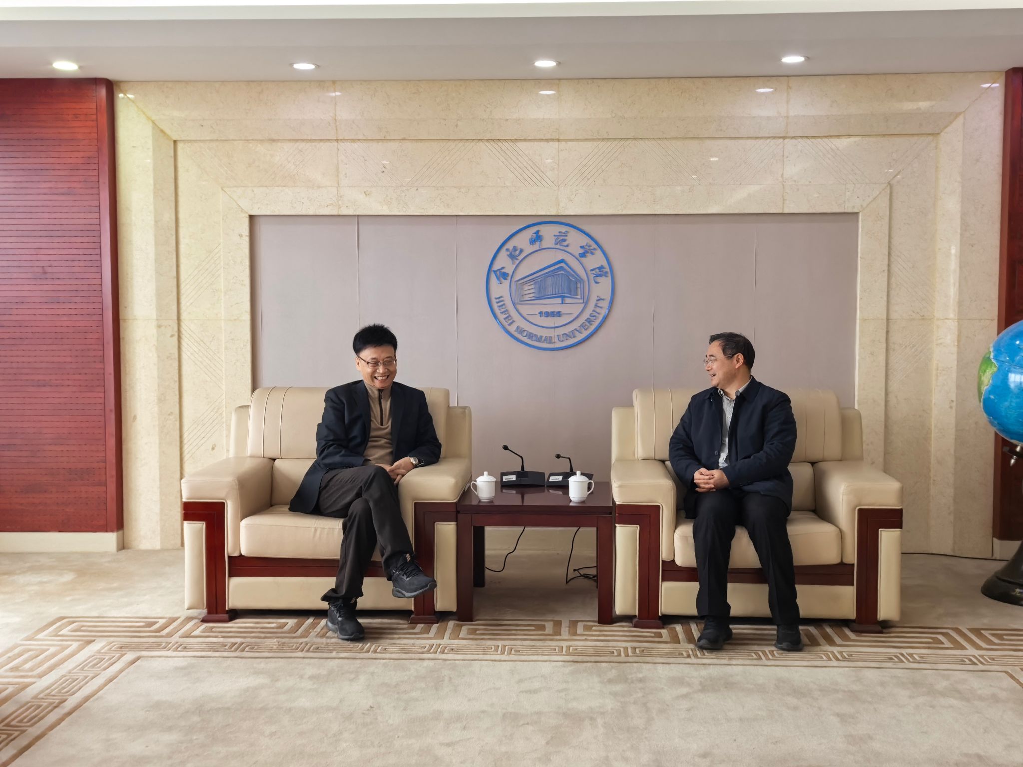校党委委员、副校长李学俊亲切接见了王海军。李学俊代表学校对王海军的到来表示欢迎,并简要介绍了学校办学理念、校史校情以及马克思主义学院科研与学科建设基本情况,期待他在中共党史党建学科硕士点申报、科研发展方面给予更多的指导和帮助。