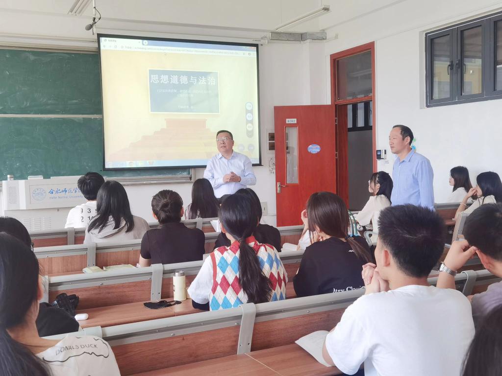 徐成钢还来到教师休息室,详细了解滨湖校区课堂教学、学风建设、课程思政等方面情况,对他们不辞辛苦、日复一日,为学生成长和学校发展付出心血表示感谢。随后,他深入课堂,与学生们一起听了一堂《思想道德与法治》课,对课堂的丰富内容和活跃气氛表示赞许。