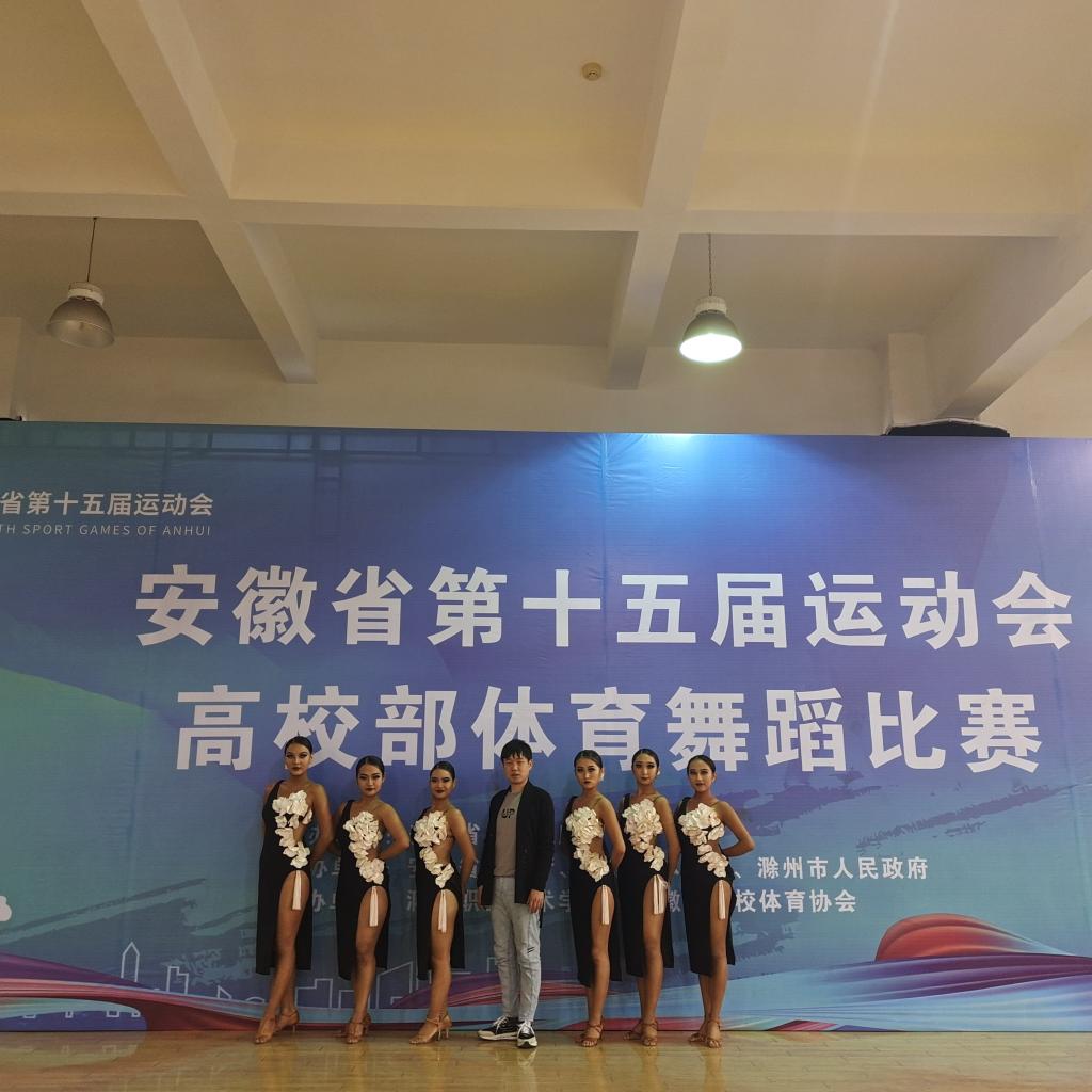 本网讯 4月12日至28日,由安徽省人民政府主办,省教育厅、省体育局、滁州市人民政府承办的安徽省第十五届运动会高校部体育舞蹈比赛在滁州职业技术学院举行,本次比赛设有甲组(非体育专业本科院校)、乙组(非体育专业高职院校)、丙组(体育专业本科院校)、丁组(舞蹈表演专业)四个组别。共有来自全省50多所高校的500多名运动员参赛。我院组队参加甲组和丙组的比赛,获得甲组比赛女子团体六人组第一名和丙组比赛女子六人组第二名,我院公体体育舞蹈项目首次在省运会上获得冠军。