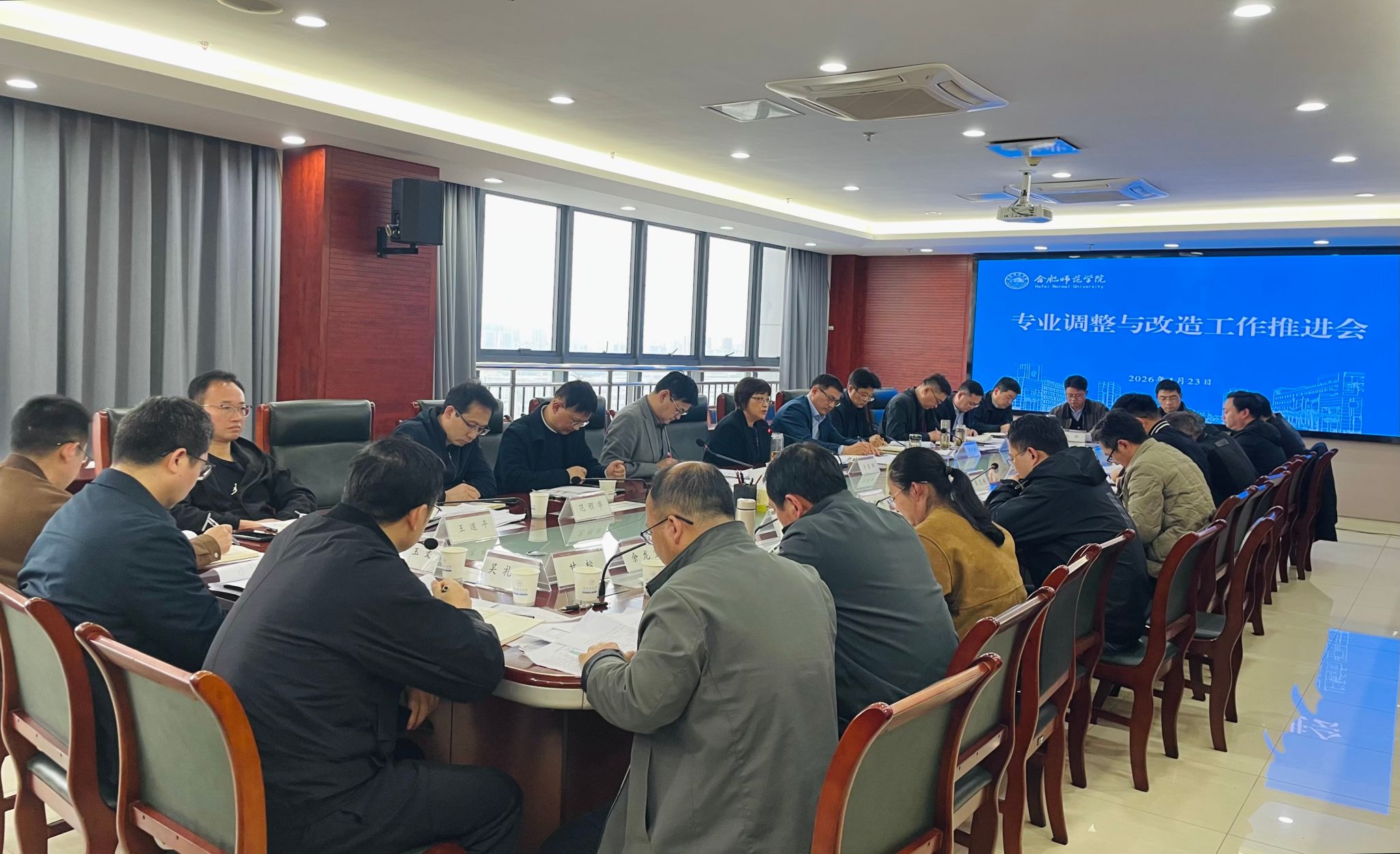 为进一步优化调整学校学科专业布局,统筹推进专业升级改造工作,推动专业内涵建设和更新迭代,促进专业向应用型深度转型,全面提升应用型人才培养质量,4月23日下午,学校在锦绣校区行知楼2008会议室召开专业调整与改造工作推进会。会议由校党委委员、副校长周端明主持,校党委书记、校长方东玲出席会议并作总结讲话,各二级学院院长、副院长,人事处、发展规划处、就业创业工作处、实验室建设与管理中心主要负责人,教务处负责人及相关工作人员参加会议。