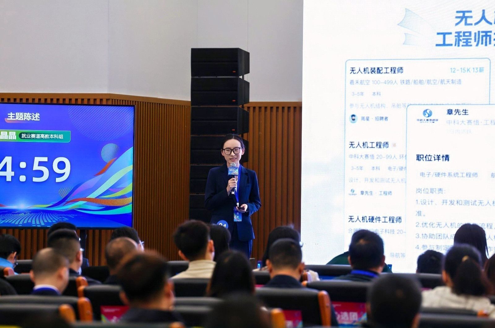 王晶晶以“匠心筑梦 翼展芳华”为主题,阐述了成为无人机系统工程师的职业目标。她结合专业与国家战略需求,构建理论到岗位胜任力的能力模型,展现合师学子的技术攻坚能力与责任担当,得到评委与“企业心选团”认可。