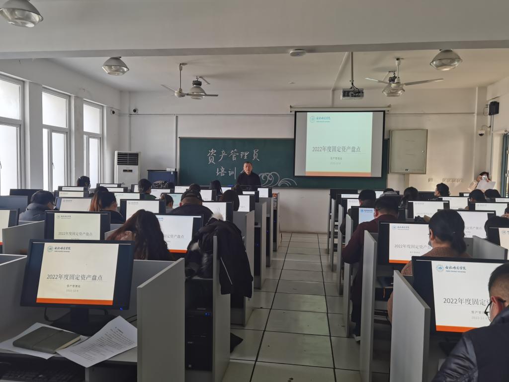 本网讯 12月6日下午,资产管理处在逸夫楼B502举办了2022年度资产盘点工作专题培训。培训由资产管理处副处长傅民主讲,学院各单位(部门)资产管理员参加了培训。