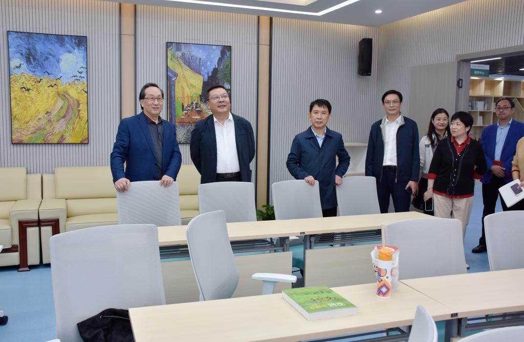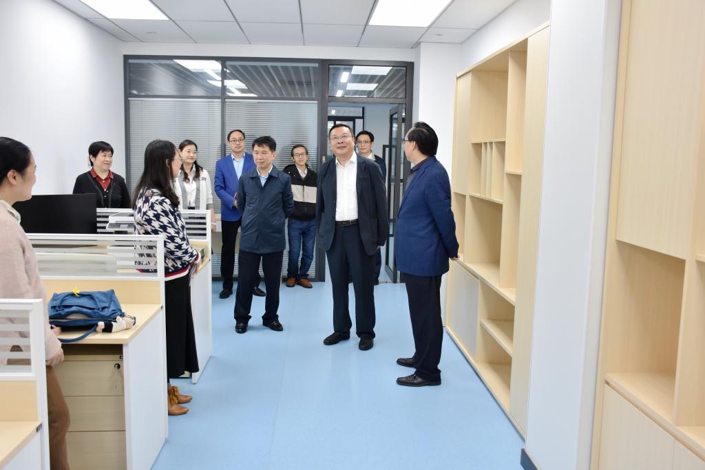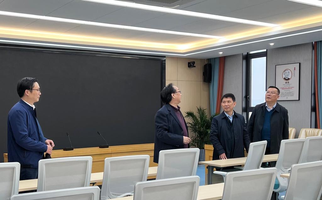 徐成钢一行先后实地考察了平台大数据分析中心、呼叫中心、指挥中心、政策调研中心等设施设备安装进展情况。徐成钢一边认真听取工程进展情况,一边详细询问工作中遇到的问题和存在的困难,现场看望慰问了正在平台开展学术研讨的老师们,并与他们亲切交谈。