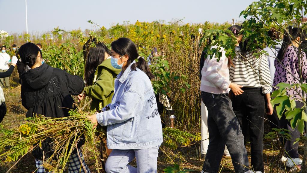 经过大家的共同努力,大片“一枝黄花”被清理。“我认为这次活动很有意义,得到劳动锻炼的同时,也使得大家的关系更加融洽,同时保护了学校的生态环境,让每个人都能为学校做一份贡献。”2022级文学院新闻传播学专业廖琦茗同学现场激动的说道。