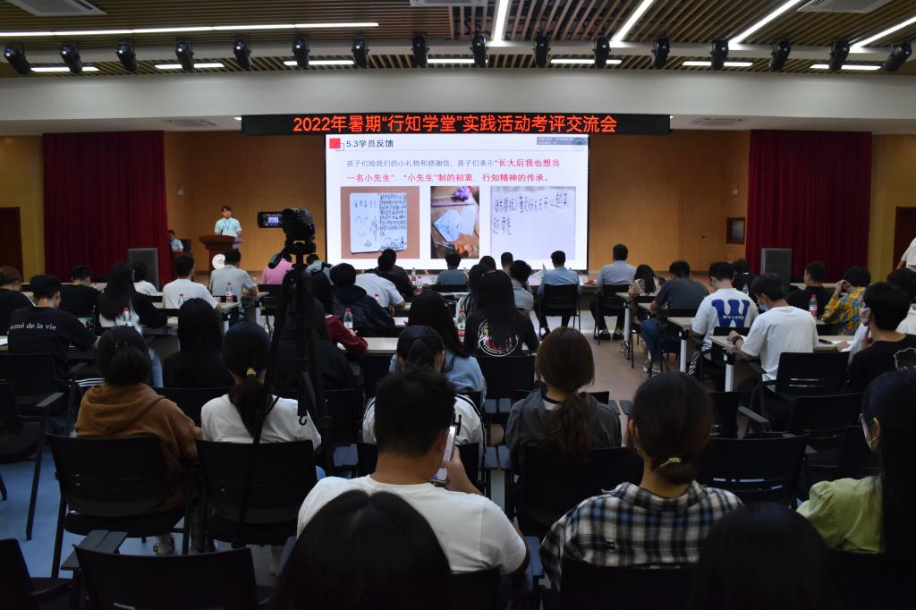 本网讯 9月21日下午,学院2022年暑期“行知学堂”实践活动考评交流会在锦绣校区大学生活动中心举行。学生工作部、保卫处、组织部、宣传部、教务处、院团委、行知文化研究中心等单位负责人和相关教师,各二级学院分团委书记、行知学堂“小先生”代表参加会议。