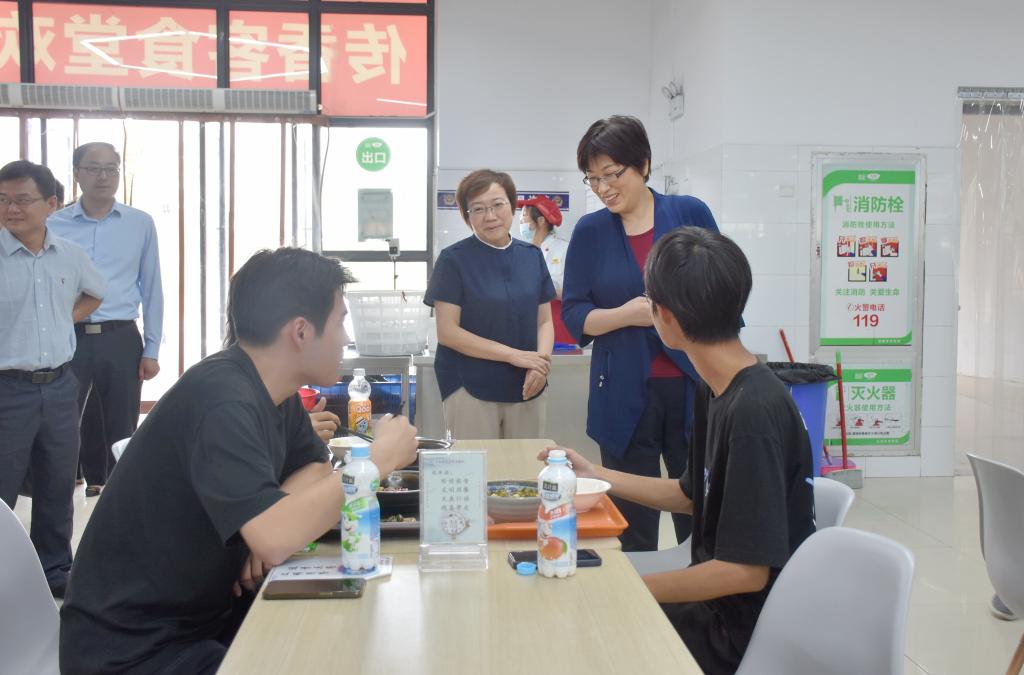 方东玲一行先后走访了教学楼、学生公寓、食堂、快递站、超市、校医院等场所,查看校园环境卫生,了解新学期教学准备和服务保障工作情况。在走访过程中,院领导详细询问教职工到岗情况,亲切慰问在岗工作人员,认真检查餐厅原材料采购和食品卫生、超市商品质量和价格标识,仔细了解快递消毒流程及校医院医药储备情况。检查组一行深入学生搬迁现场,了解学生搬迁情况,实地解决有关问题。