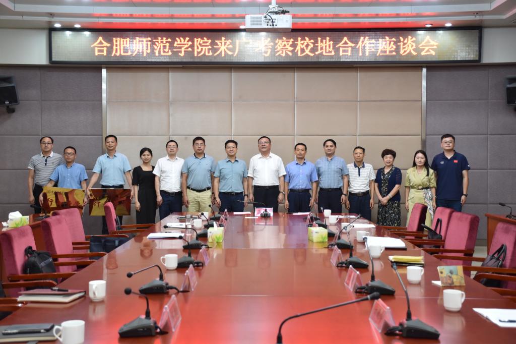 本网讯 8月1日,院党委书记徐成钢在相关部门负责人陪同下,来到广德市洽谈校地合作事宜。广德市委副书记、市长钱会,广德市委常委、组织部长储德清,广德市人社局、团委等单位负责人热情接待了徐成钢一行。
