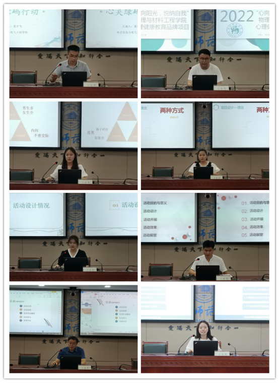 各二级学院品牌项目特色鲜明,成效显著,主要体现在四个方面:一是紧密与学科专业相结合,积极构建学院品牌特色。计算机学院“代码搴行,追光绘心”、艺术传媒学院“心理自画像大赛”、文学院“心理微电影大赛”、音乐学院“解忧杂曲库”、体育科学学院“校园定向越野大赛”将学生的专业学习与心理成长结合。二是重视学生心理需求,关注学生内心体验。生命科学学院“树洞先生,为你定制”活动为学生打造安全可靠的倾诉平台。化学与化学工程学院“心灵百叶窗”活动通过诉说心灵和感受心灵的方式帮助学生解决烦恼。刘铭传学院““阳光心理面对面”模拟心理咨询活动以独特新颖的方式宣传心理咨询常识。三是创新拓展活动形式,丰富品牌项目内涵。物理与材料工程学院“心向阳光,悦纳自我”活动开展解忧信箱、寝室卧谈会、色彩标签、素质拓展等,展现大学生乐活青春的风采。数学与统计学院“多彩素拓”鼓励学生走出寝室,融入群体,健身健心,改善人际。经济与管理学院“愉于青坪,悦于心海”活动以游园会的形式通过送你一朵小红花、百人签字展板、多项户外素拓等帮助学生放下手机,走向操场,释放学习、生活的压力。四是注重活动成效,确保学生广泛参与。外国语学院“心灵漂流瓶”、教师教育学院“四心一体”心理育人活动、马克思主义学院心理成长微课大赛,电子信息与电气工程学院“心灵绿码行动”充分调动学生参与的积极性,培养学生关注心理健康意识,引导学生悦纳自我、善待他人、热爱生活。