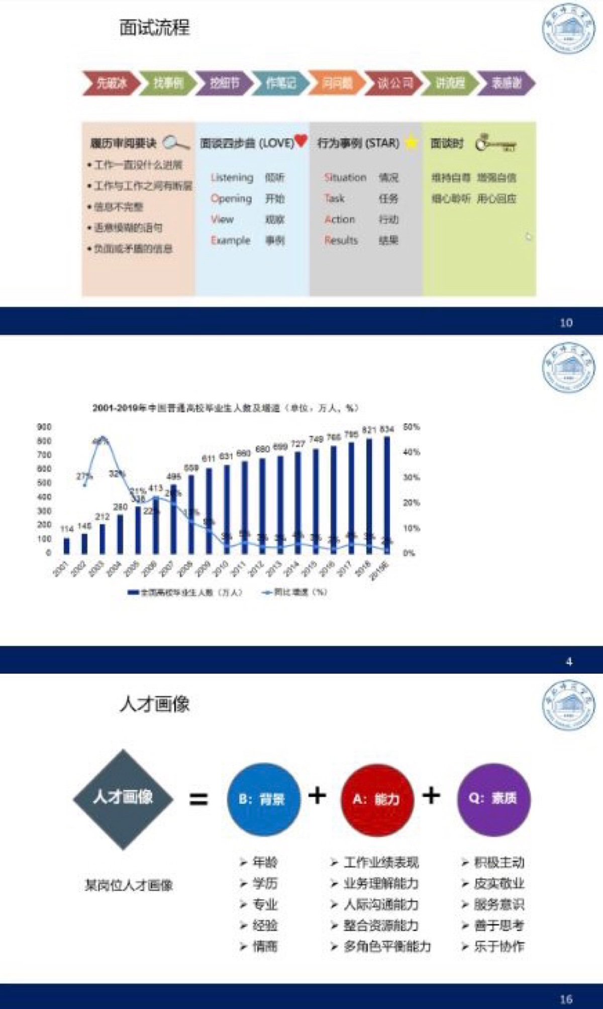 线上直播讲座由佳通轮胎(中国)投资有限公司人力资源部高管、高级经济师、教育部首批全国优秀创新创业导师宋敬担任主讲。宋敬首先分析了国内大学生就业形势,详细介绍了大学生进入职场前的准备事项、求职面试环节的基本情况以及面试全过程。他通过发生在面试等候厅、自我介绍两个环节的真实案例,向同学们生动形象地介绍了面试中经常遇到的问题以及应对方法。在面试全过程中,他分别介绍了开场破冰、自我介绍、人才画像、面试问题以及结尾技巧,重点分析了面试不同类型问题,给同学们分享了七个典型案例,在案例中提炼出面试问题的重要知识点。同学们在线上踊跃提问,积极互动。