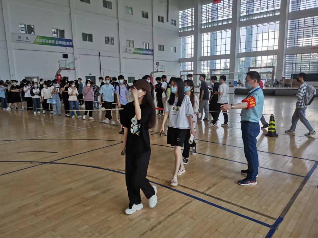 在严峻复杂的疫情防控形势下,各基层党组织进一步充分发挥战斗堡垒作用和广大党员教师的先锋模范作用,汇聚起疫情防控的强大合力。教师党员志愿者们在完成日常教学和工作任务的同时,每日还奔走在各项防疫工作之间。在锦绣校区体育馆,到处涌动着佩戴红袖章志愿者们忙碌的身影。他们在入口处做好体温检测和两码查验,随时指导师生做好核酸检测码登记,来回穿梭在队伍中维护现场秩序……烈日炎炎,志愿者们始终坚守岗位,有效助力核酸检测工作有序高速进行。