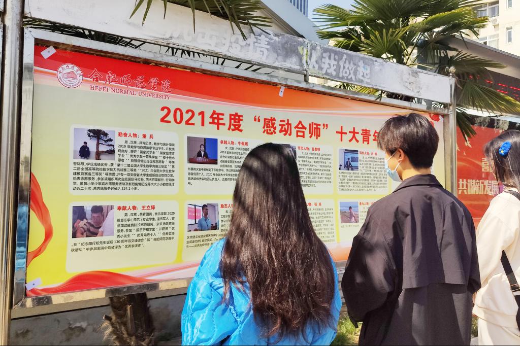 通过开展各类先进典型事迹宣传活动,发挥榜样的示范引领作用,引导团员青年学习他们坚守信仰、向上向善的思想境界,胸怀大义、奉献社会的崇高精神,勤奋学习、勇于创新的优良品质。举办第十届“感动中国”人物事迹演讲比赛,参赛同学深情地演讲了2021年度“感动中国”年度人物的动人事迹,学习了榜样精神,提高了思想道德修养。举办2021年度感动合师十大青年学生人物事迹展并开展专题报道,号召同学们向身边榜样学习。青年志愿者联合会组织评选2021年度“十佳志愿者”“优秀志愿者”,鼓励先进,引导更多同学参与到志愿服务热潮中来。音乐学院团委开展“绽放生命光彩”观影活动,播放《战疫英雄》《中国医生》等抗击疫情主题电影,引导青年学生从疫情中汲取疫情“逆行者”的榜样力量。化学与化学工程学院团委开展“讲雷锋故事,传雷锋精神”主题团日活动,以故事会的形式由团员青年讲述雷锋故事及学习雷锋的心得体会,引导雷锋精神成为学生学习、生活的精神动力,使学生成长为雷锋精神的继承者、传播者和弘扬者。