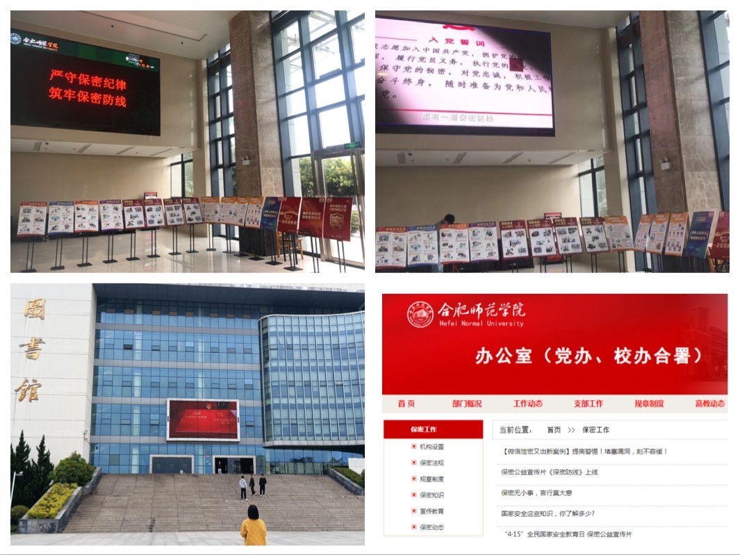 开展一次线下宣传活动。院保密办制作保密宣传展板17块,4月15日国家安全教育日当天进行展示宣传;并会同宣传部、保卫处,在行知楼和图书馆电子屏滚动播放官方保密主题公益宣传片、宣传标语,营造“人人知保密、人人懂保密、人人会保密”的浓厚氛围。