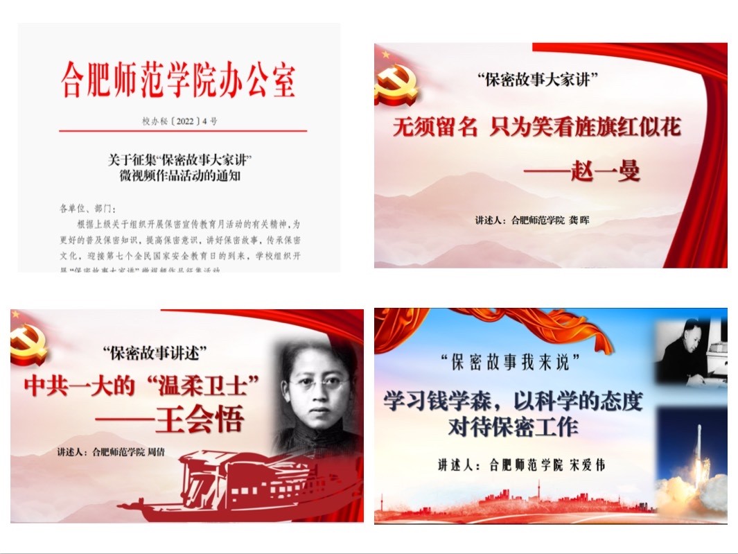 组织一次微视频征集活动。印发《关于征集“保密故事大家讲”微视频作品活动的通知》,在全校教职工范围内广泛动员,征集作品;并择优推荐3部微视频作品上报安徽省国家保密局参赛。