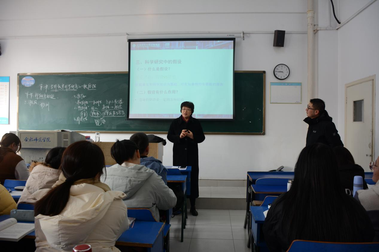 院党委副书记、院长方东玲听取了教师教育学院胡连峰老师的《学前教育研究方法》课程,并认真记录了教学要点与教学效果情况。课后,她向胡老师致以慰问,与学生们进行亲切交流。她指出,作为学前教育师范生要高度重视这门课程,深刻理解课程意义,知其然更要知其所以然。学无止境,同学们要惜时如金、孜孜不倦地抓好学习,力争在新学期取得更好成绩。