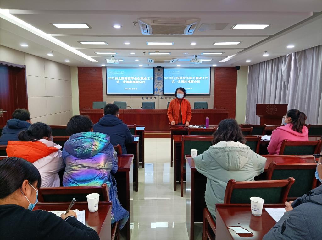 本网讯 为深入贯彻党中央、国务院“稳就业”“保就业”决策部署,贯彻落实2022届全国普通高校毕业生就业工作网络视频会议精神,调度推进高校毕业生就业工作,1月18日下午,教育部召开2022届全国普通高校毕业生就业工作第一次调度视频会议,教育部高校学生司副司长吴爱华、全国高等学校学生信息咨询与就业指导中心副主任宁小华出席会议并讲话,教育部学生司就业处处长唐小平主持会议。我院设立视频分会场,就业创业工作处全体工作人员和各二级学院2022届毕业班辅导员共计30余人参加会议。