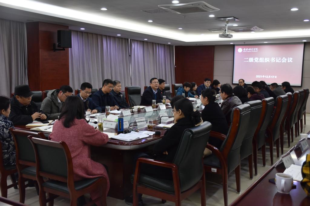 本网讯 12月17日下午,学院在锦绣校区行知楼第二会议室召开二级党组织书记会议,部署推进近期基层党建和思想政治工作。院党委书记徐成钢出席会议并讲话,各二级党组织书记、专职副书记,组织部、办公室、纪委办、宣传部、团委、学生工作部、保卫处等部门负责人参加会议。会议由院党委副书记吴昕春主持。