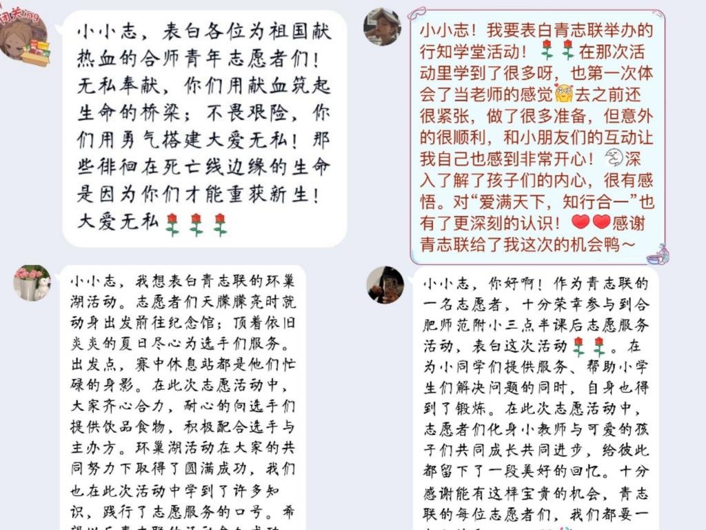 冬日暖阳下,同学们用手中的笔描绘着志愿服务过程中的点点滴滴,用实际行动彰显着青年志愿者的熠熠风采。同学们还自发录制视频表达祝福,共同祝愿志愿者们十二五国际志愿者日快乐。与此同时,合肥市师范附小、合肥师范附小第三小学等各志愿服务合作单位也通过录制视频等形式祝福合师青年志愿者们节日快乐。