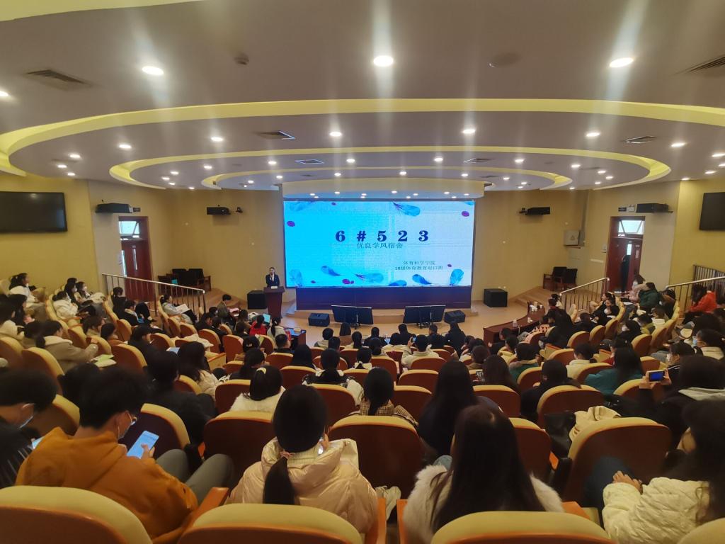 本网讯 12月1日下午,我院2020-2021学年度“十佳优良学风宿舍”评选汇报会在滨湖校区学术报告厅举行,来自各二级学院15个优秀宿舍参选汇报,“三优”评审工作组成员、各二级学院辅导员以及学生代表200余人参加汇报会。