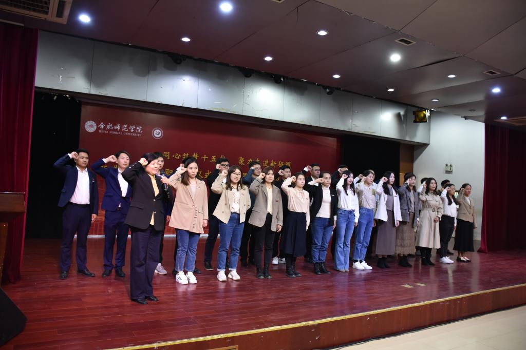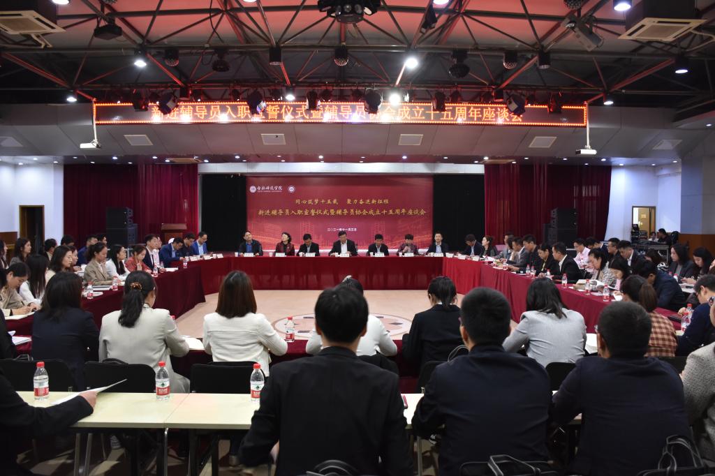 本网讯 11月3日下午,学校在锦绣校区大学生活动中心举办“同心筑梦十五载,聚力奋进新征程”2021年新进辅导员入职宣誓仪式暨辅导员协会成立十五周年座谈会。党委书记徐成钢出席并讲话,党委副书记吴昕春出席会议,统战部、就业创业工作处、财务处、办公室、组织部、宣传部、人事处、团委、保卫处、数学与统计学院等部门负责同志,辅导员协会历任会长、副会长,全体辅导员欢聚一堂谈收获、话成长、论发展。座谈会由学生工作部部长陆涛主持。